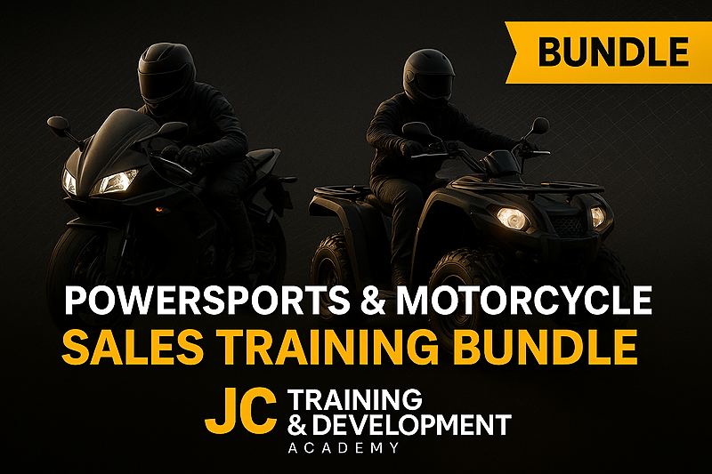 Bundle • 16 learning productsAccelerate your career with the Powersports & Motorcycle Sales Training Bundle. Learn proven strategies, scripts, and techniques to build confidence, increase sales, and succeed in today’s competitive dealership environment.